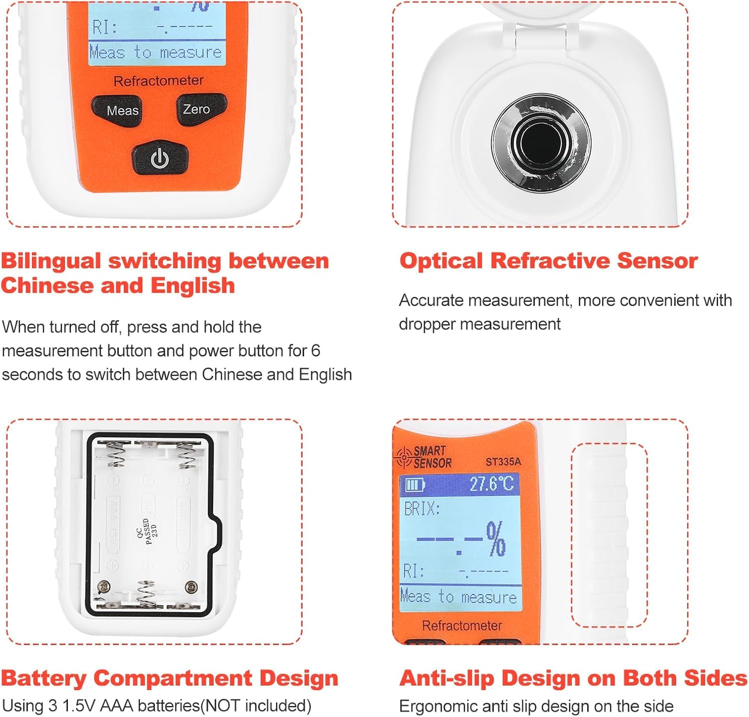 Real Instruments Digital Refractometer 0-35% Smart Sensor ST335A LCD Refractometer Handheld Honey Refractometer ATC Sugar Percent Tester Sugar Concentration Detector Sugar Solution Content Test Tool