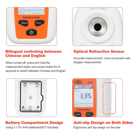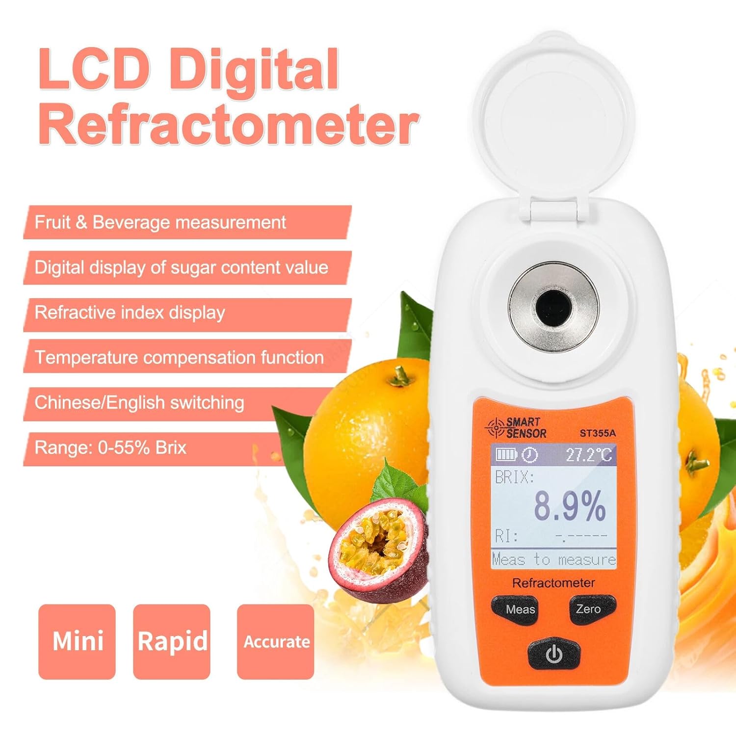 Real Instruments Digital Refractometer Smart Sensor ST355A Sugar Meter High Accuracy Portable 0-55% Test Range Fruit Juice Sweetness Tester For Fruit Sale Cool Drinks
