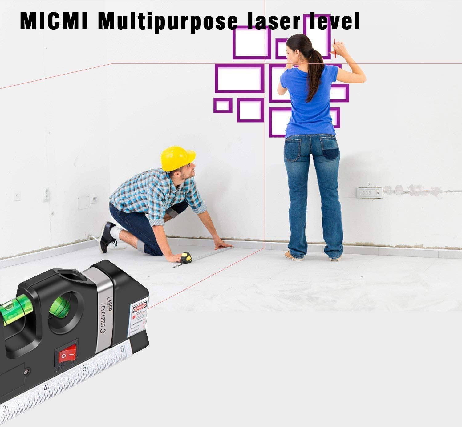 Real Instruments Laser Level Pro 3 – 3-in-1 Multipurpose Laser Level with Measuring Tape, Horizontal & Vertical Bubble Vials, Laser Line Projection for Accurate Alignment and Measurement – Ideal for Home, DIY & Professional Use
